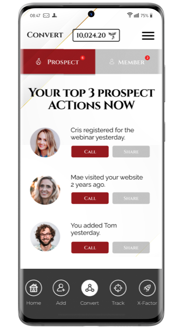 As you take action on the platform you are rewarded. Action points accumulate for viewing training video, reaching out to prospects, following up, and leading your tribe.